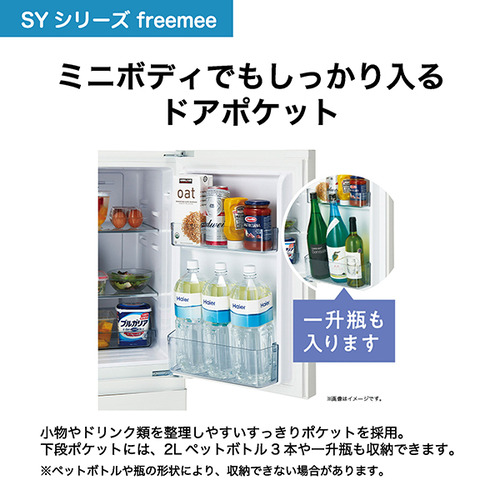 小物やドリンク類を整理しやすいすっきりポケットを採用。下段ポケットには、2Lペットボトル3本や一升瓶も収納できます。
