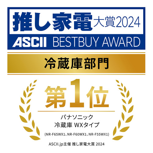 うまもり保存エリアを冷凍室上段の全幅に搭載。従来比約2倍(※2024年新商品NR-F65WX1と2023年商品NR-F659WPXの比較。※)の収納量に。