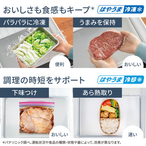 クーリングアシストルーム:・アルミプレート(1枚) ・選べる3つの冷却モード「冷ます」、「急冷」、「急凍」 ・クイック操作ボタン(冷蔵室のドア下側)