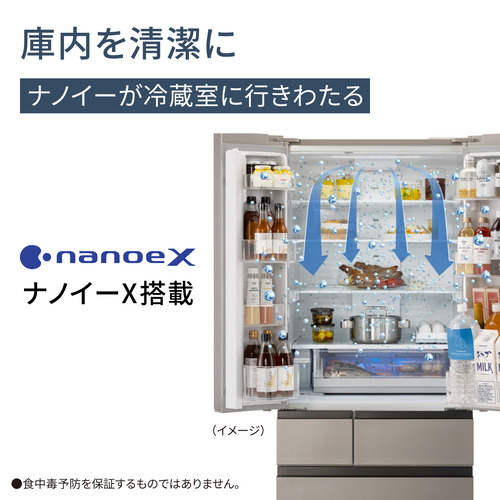 機能:・AIエコナビ(おやすみ・かしこく・しらべる) ・庫外湿度センサー ・抗菌ハンドル(冷蔵室ハンドル) ・ナノイーX(冷蔵室) ・Wクリーンフィルター ・無線LAN接続 ・専用アプリ「Live Pantry」対応