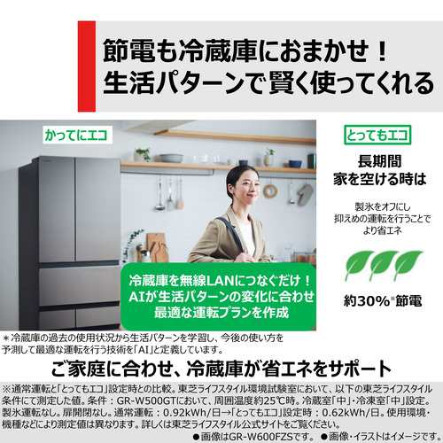 東芝 GR-W500GTML(NS) 5ドア冷凍冷蔵庫 (501L・左開き) エクリュゴールド