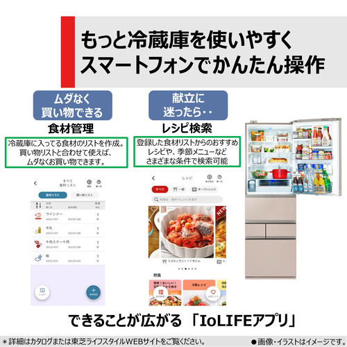 従来の400Lクラスの幅はそのままに、容量プラス90L。コンパクトなのにたっぷり入るから、まとめ買いにも安心です。