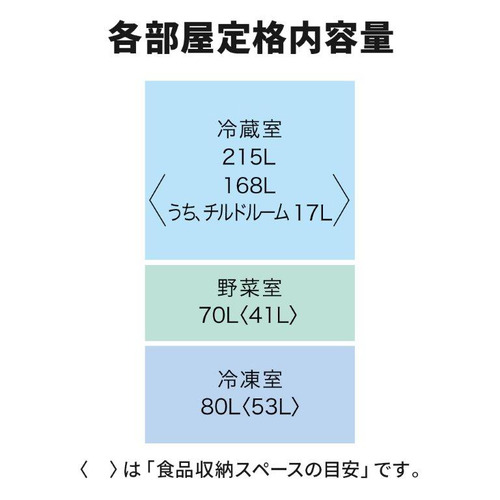 冷蔵室(スライド室):215L(内、スライド室17L)