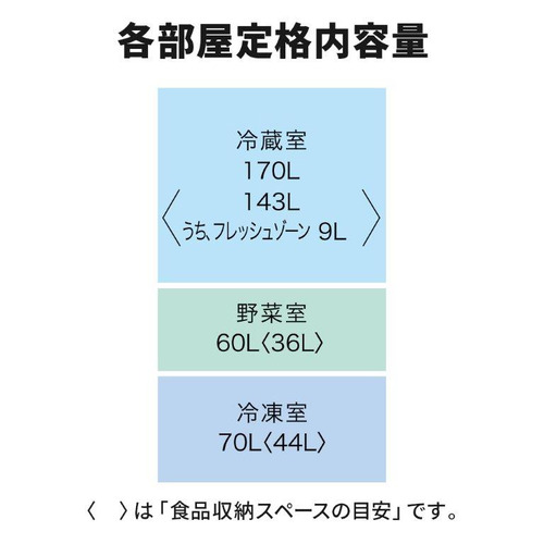 冷蔵室(スライド室):170L(内、スライド室9L)