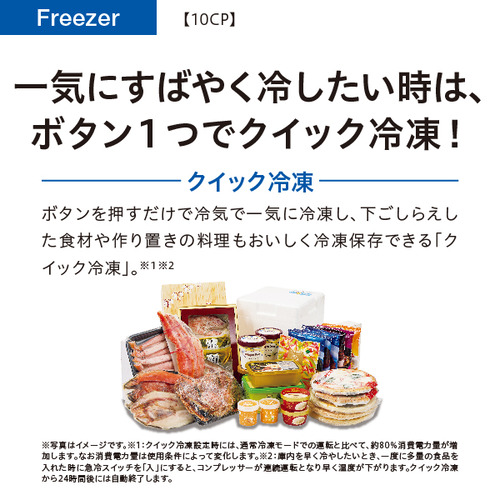 クイック冷凍機能がついているので、スピーディーにフリージングすることができます。