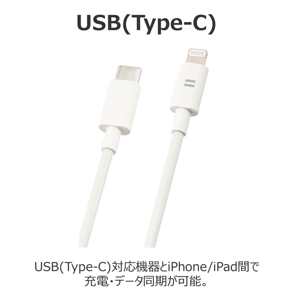 iPhone/iPadのLightningコネクタ搭載機器と、Type-C ACアダプタ・パソコンと繋いで充電・データ同期可能。