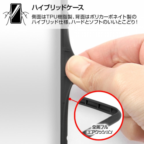 四つ角だけでなく、側面全周が耐衝撃構造。全周フルエアクッション。鉛筆硬度2Hで傷に強いポリカーボネイト素材。デザインを損ねない側面のストラップホール。衝撃をやわらげるTPU素材。