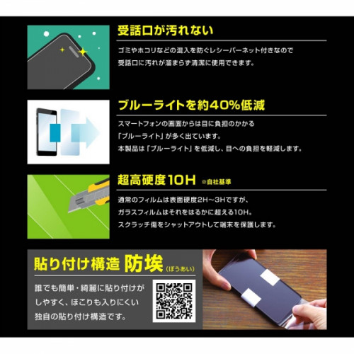 本製品は「ブルーライト」を低減し、目への負担を軽減します。通常のフィルムは表面硬度2Hー3Hですが、ガラスフィルムはそれをはるかに超える10H。
