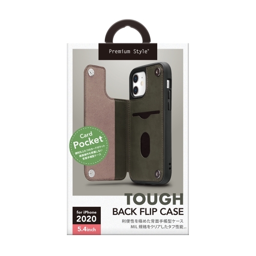 PGA PG-20FPU03BK iPhone12 mini用 タフバックフリップケース Premium Style ブラック