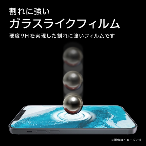 ●ガラスのように美しい透明感を実現!割れに強く、ガラスと同じ高硬度9Hを実現したブルーライトカットタイプのiPhone 12、iPhone 12 Pro用液晶保護フィルムです。