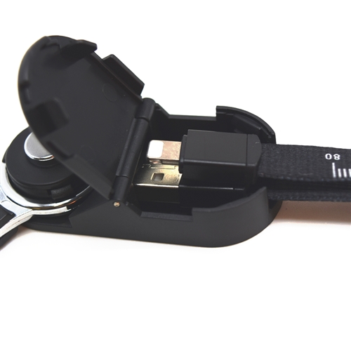 ●首から掛けられるストラップ充電ケーブル。(充電/通信可能)