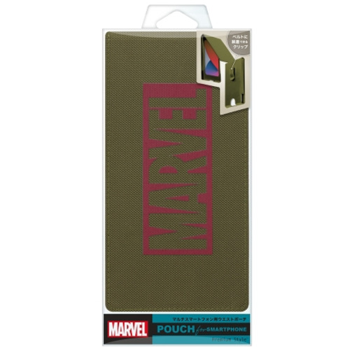 「MARVEL」ロゴデザインの軽さと耐久性を兼ね備えたナイロン素材を使用した多機種スマートフォン対応ウエストポーチ。