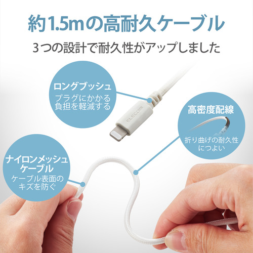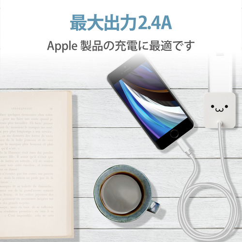 エレコム MPA-ACL07WF LightningAC充電器 2.4A出力 ケーブル一体 1.5m 高耐久ケーブル ホワイトフェイス