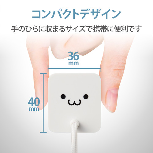 ケーブル長は1.5m、かわいい顔つきの「しろちゃん」モデルです。