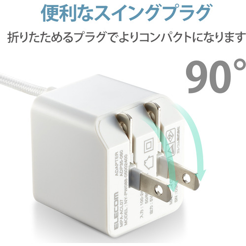 ●家庭用コンセントからLightningコネクタ搭載のiPhone、iPodやiPadを充電できるLightningケーブル一体型のAC充電器です。