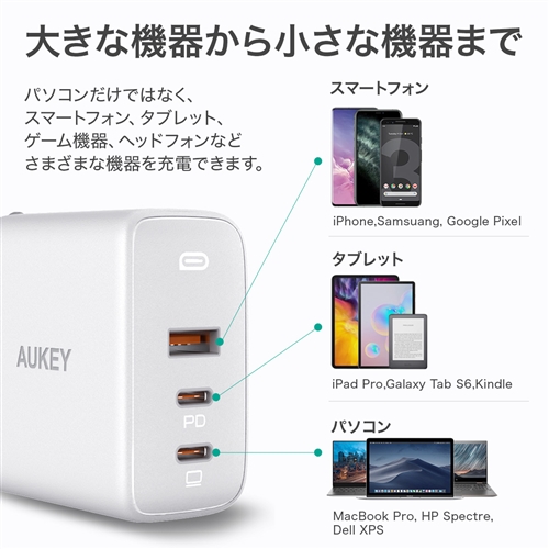AUKEY PA-B6S-WT USB充電器 Omnia Mix3 90W PD対応 USB-A 1ポート/USB-C 2ポート ホワイト