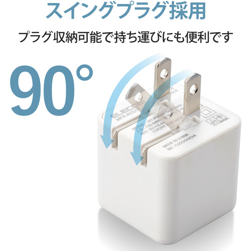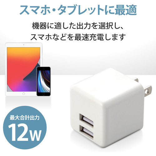 エレコム MPA-ACU11WH AC充電器 スマホ・タブレット用 2.4A出力 USB-Aメス2ポート おまかせ充電搭載 キューブ型 ホワイト