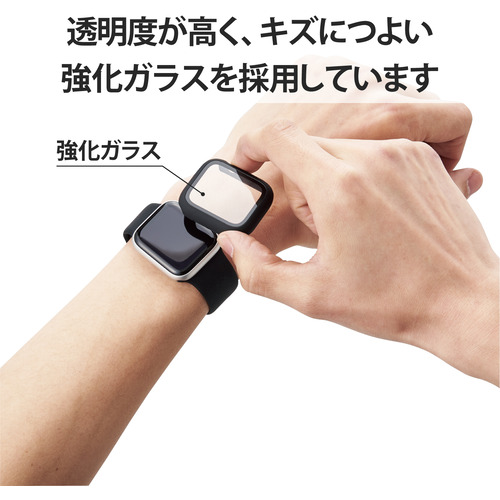 エレコム AW-40CSPCGBK アップルウォッチ カバー ケース SE/Series 6/5/4 [ 40mm ] フルカバー ハイブリッド 強化ガラス 全面保護 液晶 側面 2重構造 傷・汚れ防止 Apple Watch モデル番号[ A2351 A2291 等] ブラック
