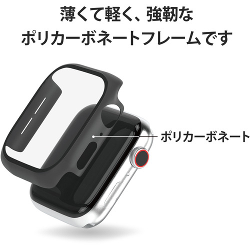 ●ポリカーボネート素材とガラスの2重構造で、Apple Watchの液晶部及び側面部を保護します。