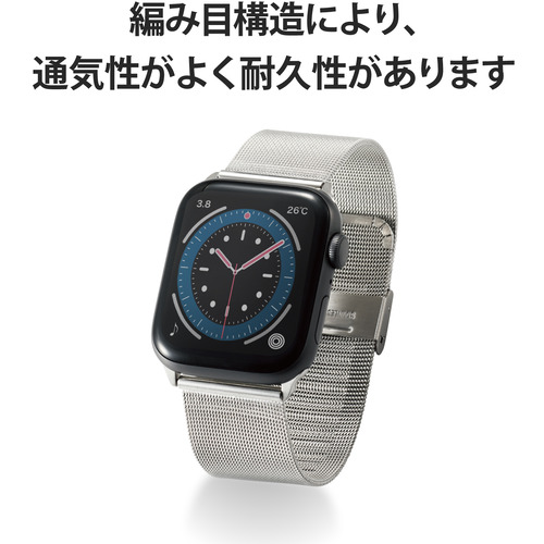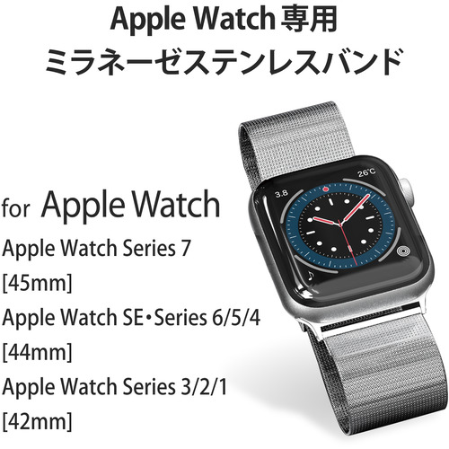 エレコム AW-44BDSSMSV Apple Watch 44 42mm バンド ステンレス ミラネーゼタイプ シルバー