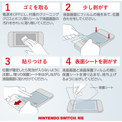 ●NINTENDO SWITCH(TM) の液晶画面をキズや汚れから守る、抗菌、ブルーライトカット、衝撃吸収タイプの液晶保護フィルムです。
