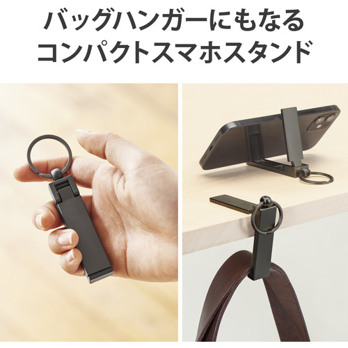 エレコム P-DSCMPBHBK スマホ用スタンド コンパクト バッグハンガー機能付 マットブラック
