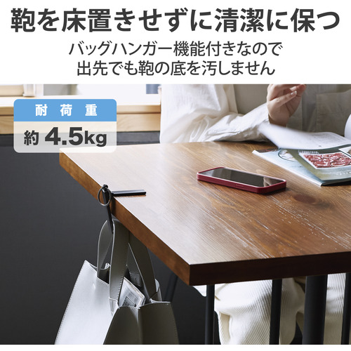 ●バッグハンガー機能付きのため、出先でも鞄を床置きせずに清潔に保ちます。