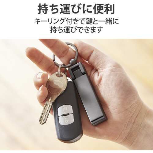 外形寸法:幅約18mm×高さ約74mm×奥行約11mm(収納時本体)、Φ約32mm(キーリング)