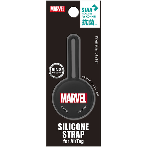 「MARVEL」ロゴデザインの柔らかなシリコン素材を使用したAirTag用の抗菌シリコンストラップです。