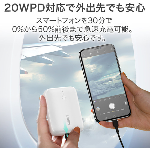 AUKEY PB-N83S-WT Basix Mini 10000mAh 20W PD対応 SCP A×1 C×1 ホワイト