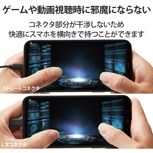 ●L字コネクタを採用し、飛び出しが少ないスッキリした配線が可能なLightningケーブルです。