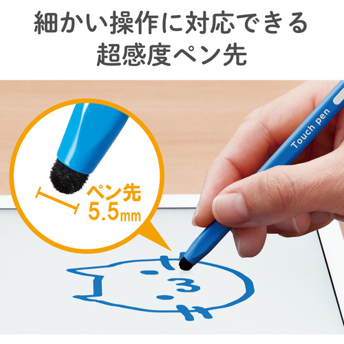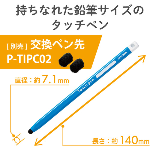 エレコム P-TPEN02SBU タッチペン スマホ・タブレット用 鉛筆型 三角 細軸 超感度タイプ ブルー