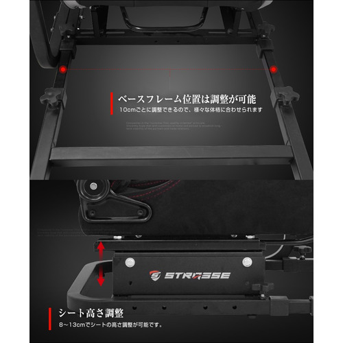 ベースフレームの長さやハンドル位置、フットペダルの角度やシート位置など自由調整ができるので、様々な体格の人に合わせて自分だけのドライビングポジションを極めることができます。