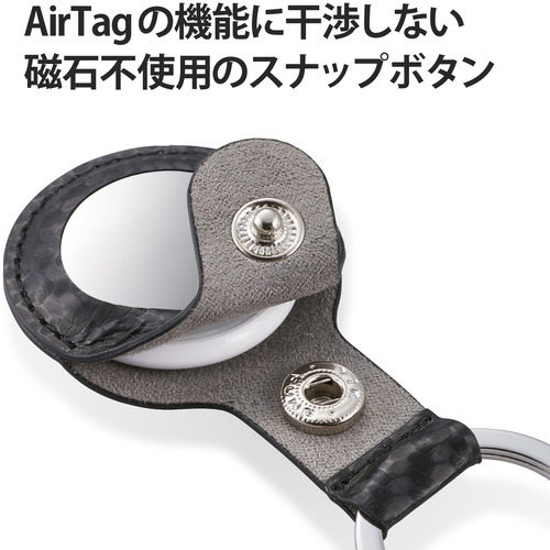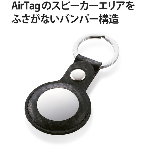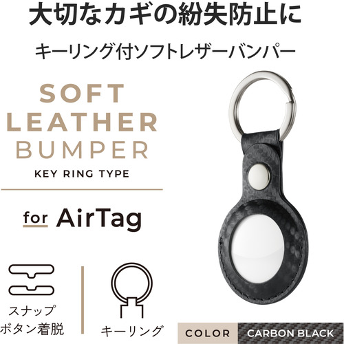 エレコム AT-LBKCB AirTag用アクセサリ キーリング付ソフトレザーバンパー カーボンブラック