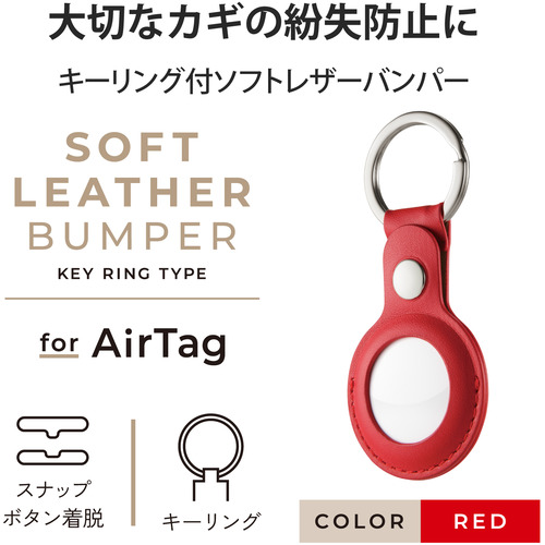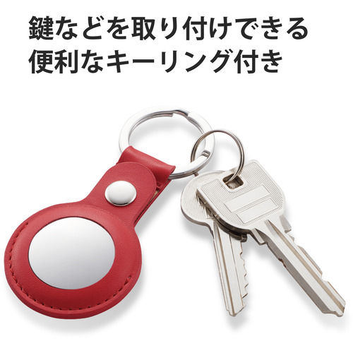 エレコム AT-LBKRD AirTag用アクセサリ キーリング付ソフトレザーバンパー レッド