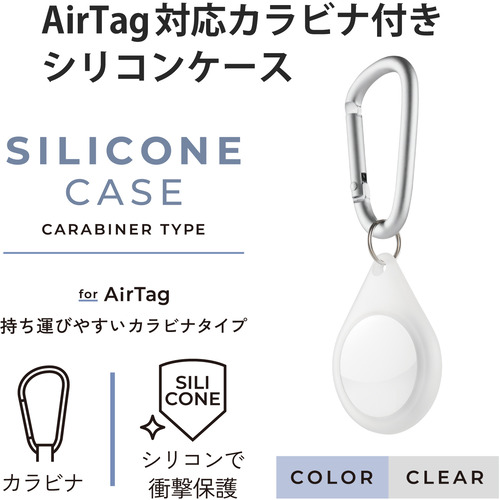 エレコム AT-SCKCR AirTag用アクセサリ カラビナ付シリコンケース クリア