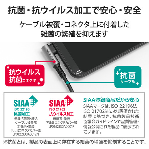 エレコム MPA-ACL20NBK2 Type-C USB-Cケーブル スマホ用 USB(A-C) 認証品 L字コネクタ 抗菌・抗ウイルス 2.0m ブラック