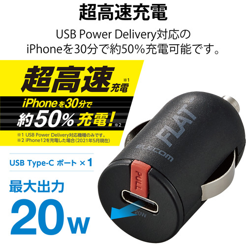 エレコム MPA-CCPD05BK シガーチャージャー 超コンパクト USB Power Delivery準拠 20W USB-C1ポート ブラック