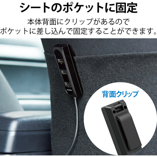 また、製品本体背面にクリップがあるので、シートのポケットに差し込んで固定することもできます。 【仕様】