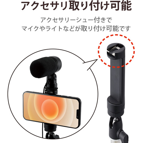 エレコム P-STSRSLBK スマートフォン用三脚 ロングタイプ 最大1600mm アクセサリーシュー付 ブラック