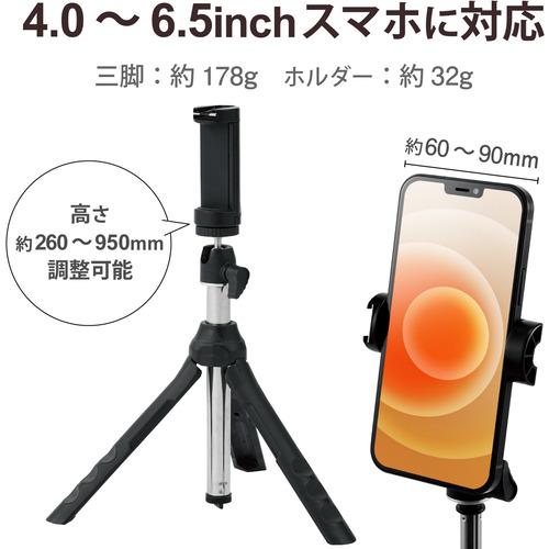●お出かけ時・動画撮影時など様々なシーンで活躍する持ち運びしやすいスマートフォン用三脚です。