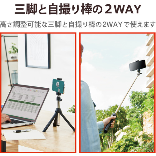 自撮り棒としても使用できる2Wayタイプです。