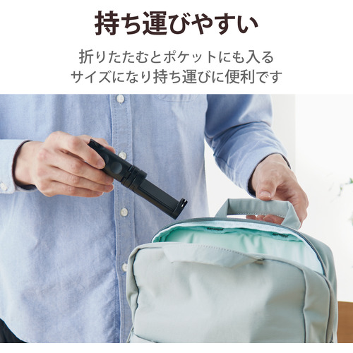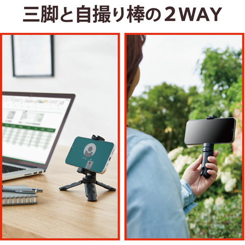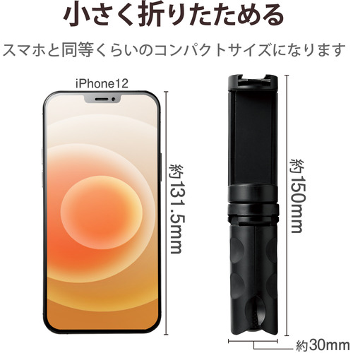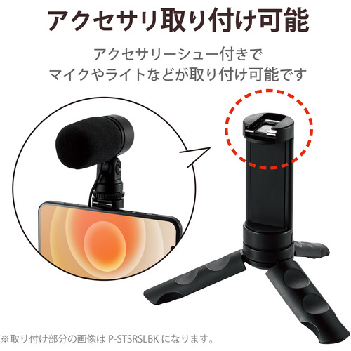 エレコム P-STSRSSBK スマートフォン用三脚 自撮り棒 2way コンパクト アクセサリーシュー付 ブラック