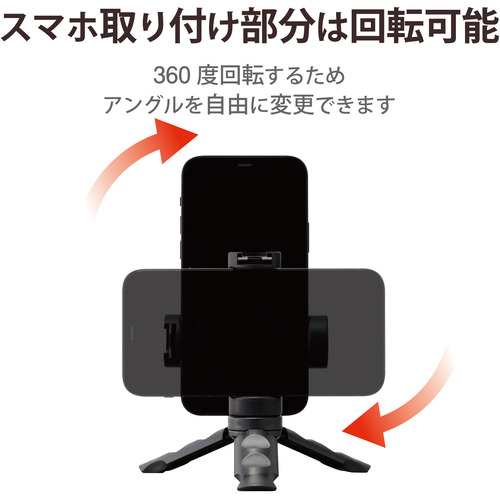●360度回転(縦撮り、横撮り)しますので、スマートフォンをお好みの角度・位置で固定可能です。