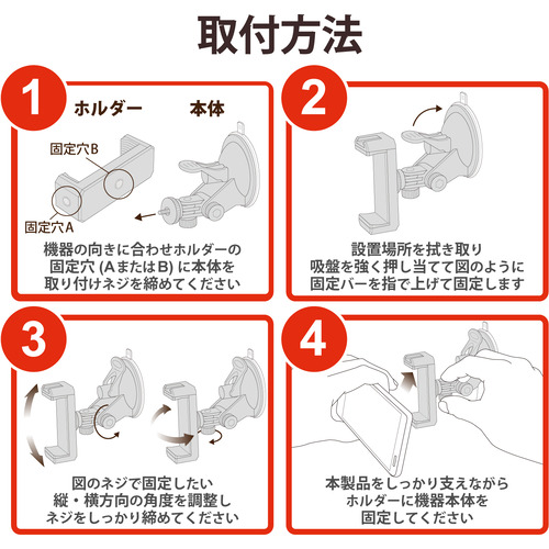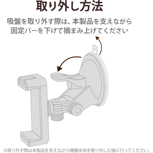 内容物:本体(吸盤)、スマートフォンホルダー、取扱説明書