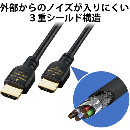 ●18Gbpsの高速伝送とノイズ耐性を高めたイーサネット対応Premium HDMIケーブルです。