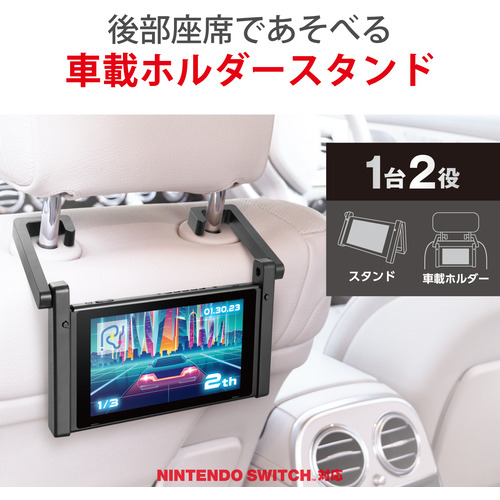 ●NINTENDO SWITCH(TM) 本体のJoy-Con取付部分を利用して取り付けて、スタンドとしても車載ホルダーとしても使用できる1台2役のNINTENDO SWITCH(TM) 用スタンドです。