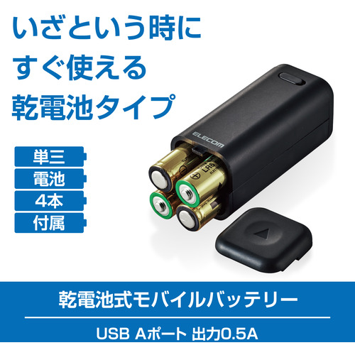 エレコム DE-KD01BK モバイルバッテリー 乾電池式 単3電池4本付属 ブラック