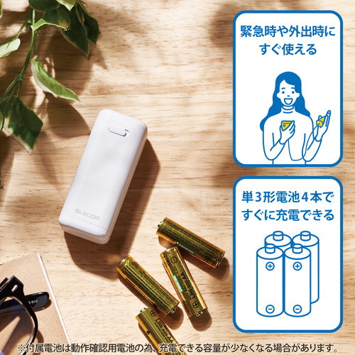 エレコム DE-KD01WH モバイルバッテリー 乾電池式 単3電池4本付属 ホワイト