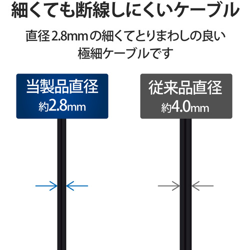 ●直径2.8mmの細くてとりまわしの良い極細ケーブルを使用しています。